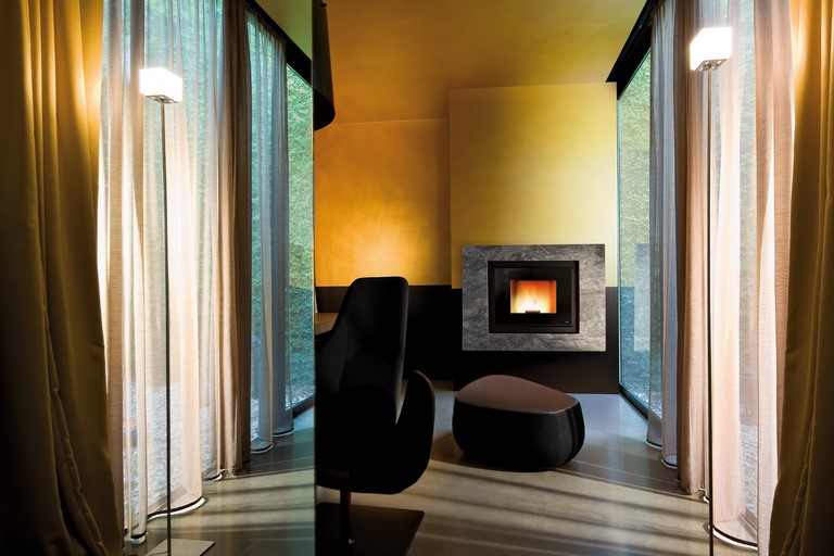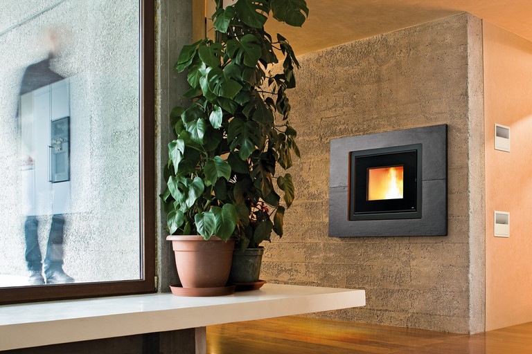 Insert à pellets comfort air - puissance 10.5 kW - existe en versions bouches d'air basic ou slim - Maestro - Flamme verte 7 étoiles - coloris noir.
