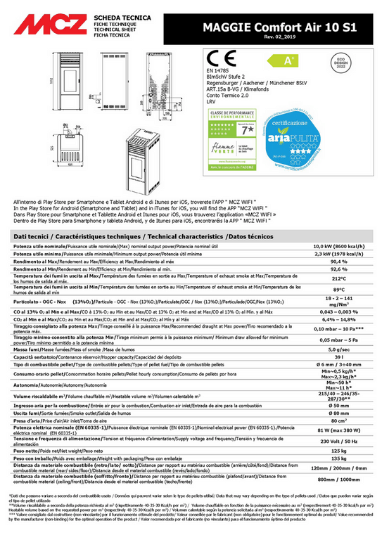 : Poêle à pellets comfort air - puissance de 10 kW - Flamme verte 7 étoiles - coloris white, dark, bordeaux.