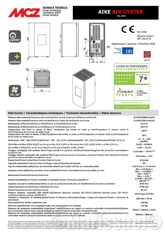 : Poêle à pellets Comfort air - puissance 8.1 kW - Maestro - Flamme verte 7 étoiles - coloris black.