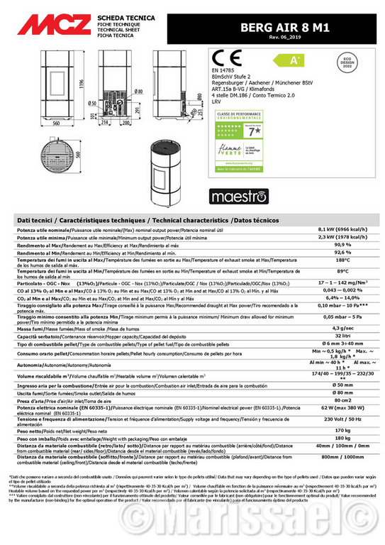 Poêle à pellets air - puissance 8.1 kW - Maestro - Flamme verte 7 étoiles - coloris serpentino